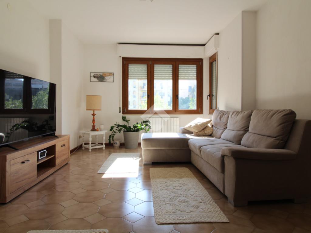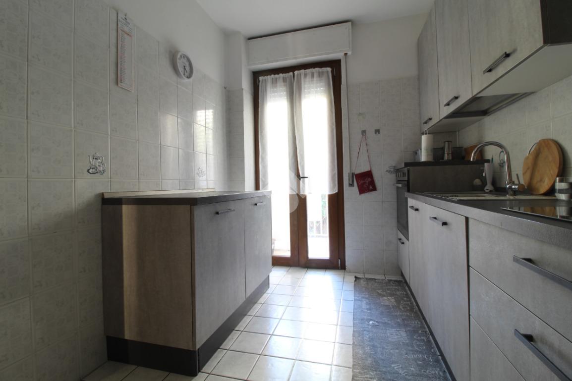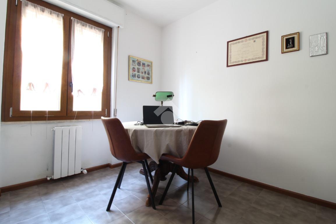 La cucina separata e funzionale, dispone di un comodo balcone di servizio con esposizione verso la via principale. La zona notte comprende tre camere da letto: due matrimoniali spaziose e una singola attualmente adibita a studio, ideale anche come camera per ospiti o stanza hobby. I bagni sono due, entrambi finestrati, uno con vasca e l’altro con doccia. Completa la proprietà un pratico ripostiglio.