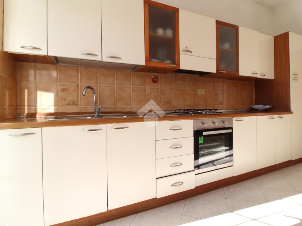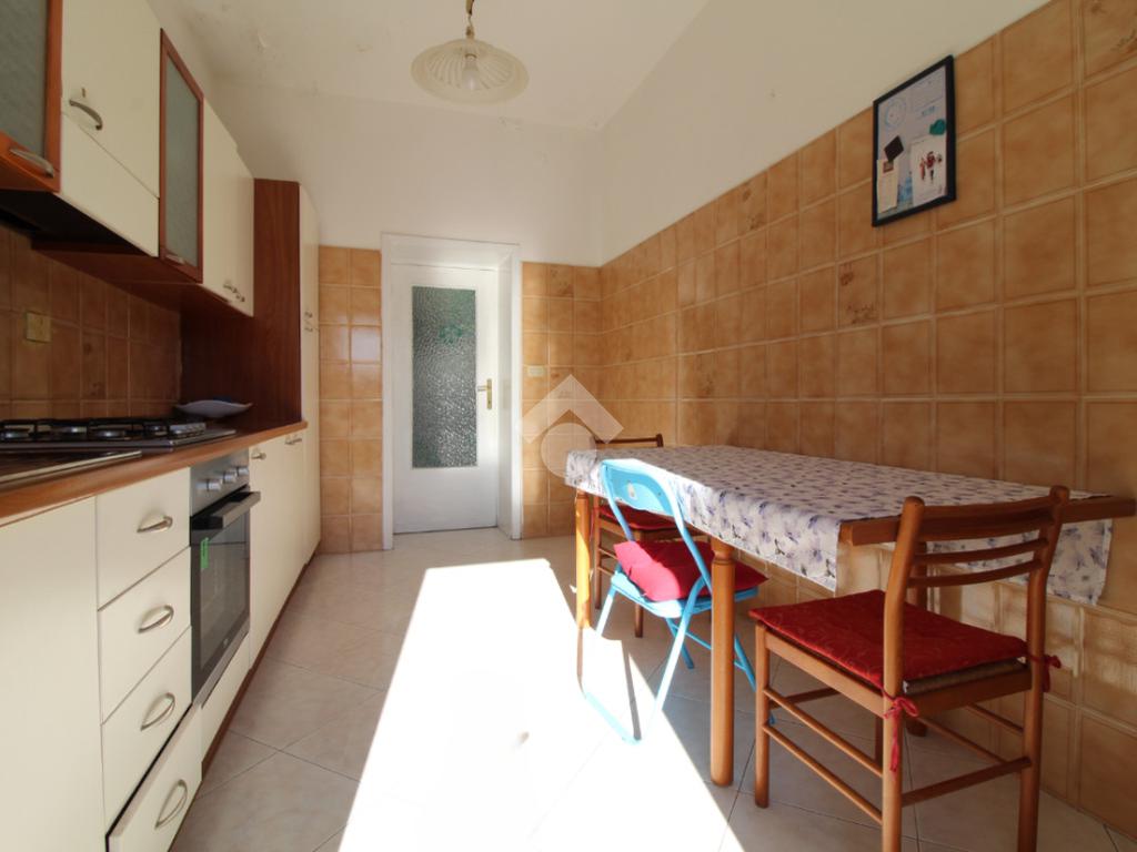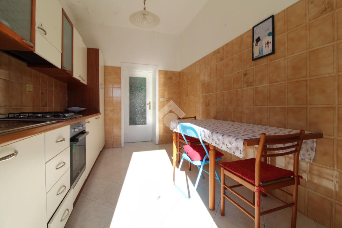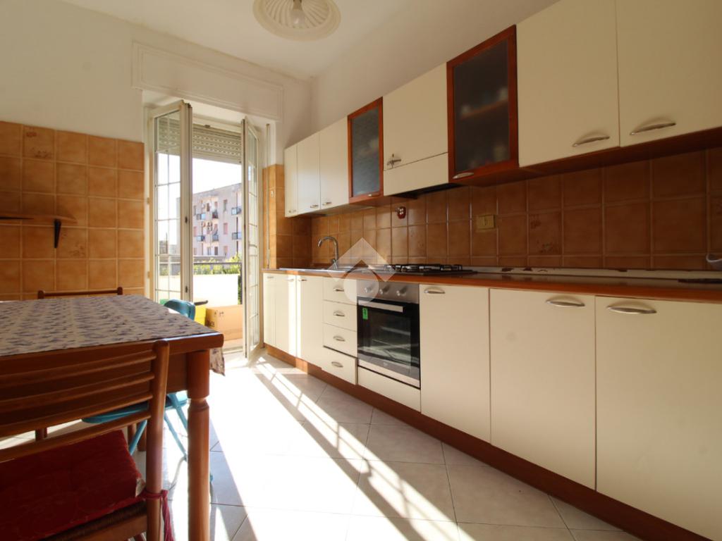 La distribuzione degli spazi è funzionale: l'immobile è composto da una cucina separata con accesso a un balcone, tre camere da letto, di cui una dotata di balcone privato, e un bagno finestrato con doccia. Entrambi i poggioli affacciano su via Napoli e godono di ottima esposizione solare nelle ore pomeridiane, rendendo gli ambienti luminosi e piacevoli da vivere.