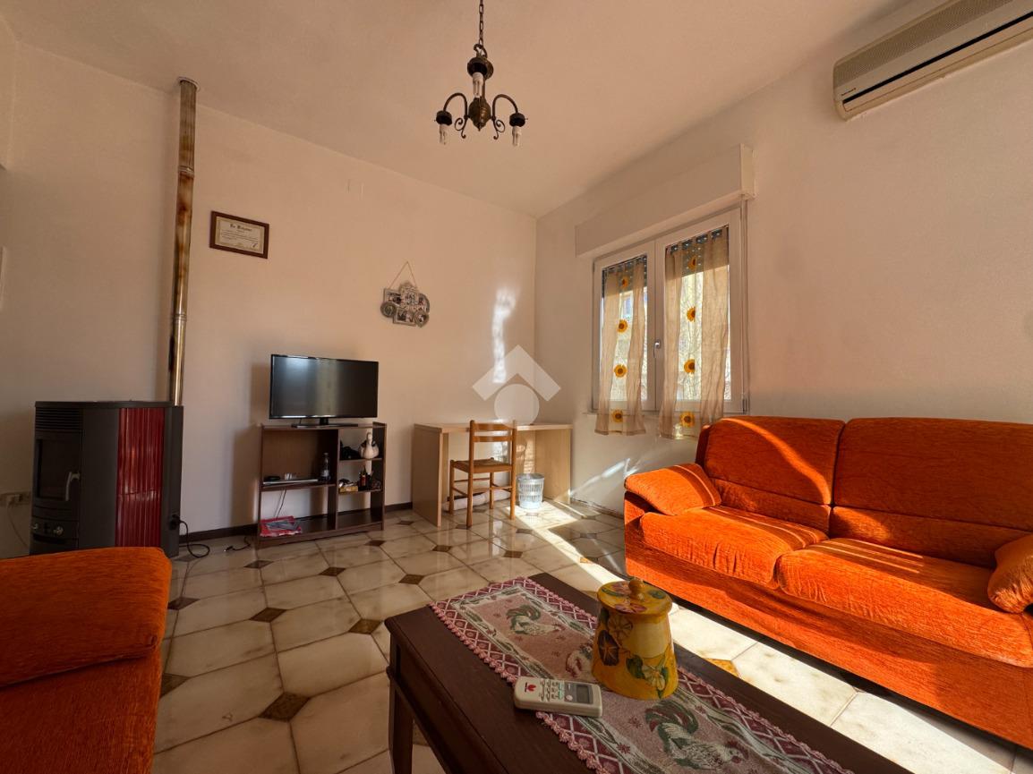 All’ingresso troviamo un accogliente soggiorno con uscita ad un balcone che guarda verso la via principale. La cucina è pratica e bene organizzata anch’ essa dotata di zona notte è composta da tre camere da letto, tutte matrimoniali, perfette per chi desidera e necessita di spazi personali ben definiti. Il bagno è finestrato e dotato di riscaldamento è garantito da una stufa a pellet, oltre alla presenza delle pompe di calore in tutte le stanze, ideali sia per il riscaldamento che per il raffrescamento degli ambienti.